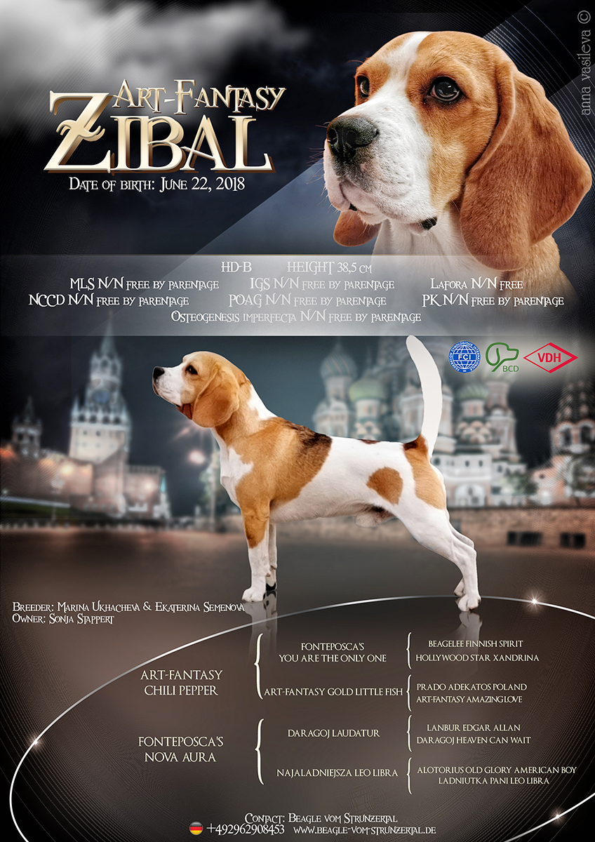 Zibal ist ein sehr schön gezeichneter Rüde von korrekter Größe, harmonisch proportionierter Kopf, und einem sanften Ausdruck, sehr gute Vorbrust und einem vorzüglichen Behang. Sein Gebäude ist von sehr guter Substanz. Sein Bewegungsablauf zeichnet ihn mit einem deutlichen Schub aus.